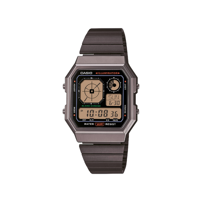 Casio Jam Tangan Pria dengan format Digital A130WEGG-1ADF. Jam tangan digital yang menampilkan tampilan jam bergaya analog yang dibalut dengan tampilan gadget yang Anda sukai.