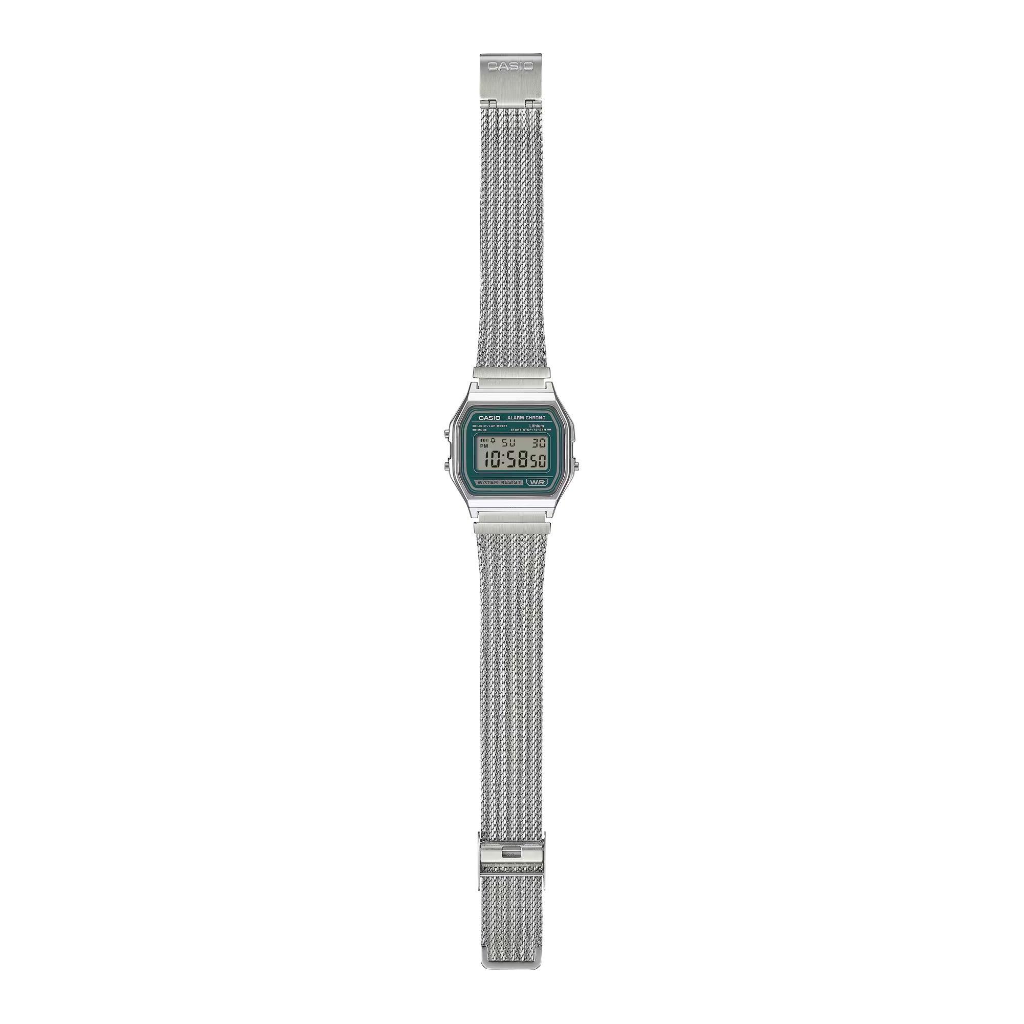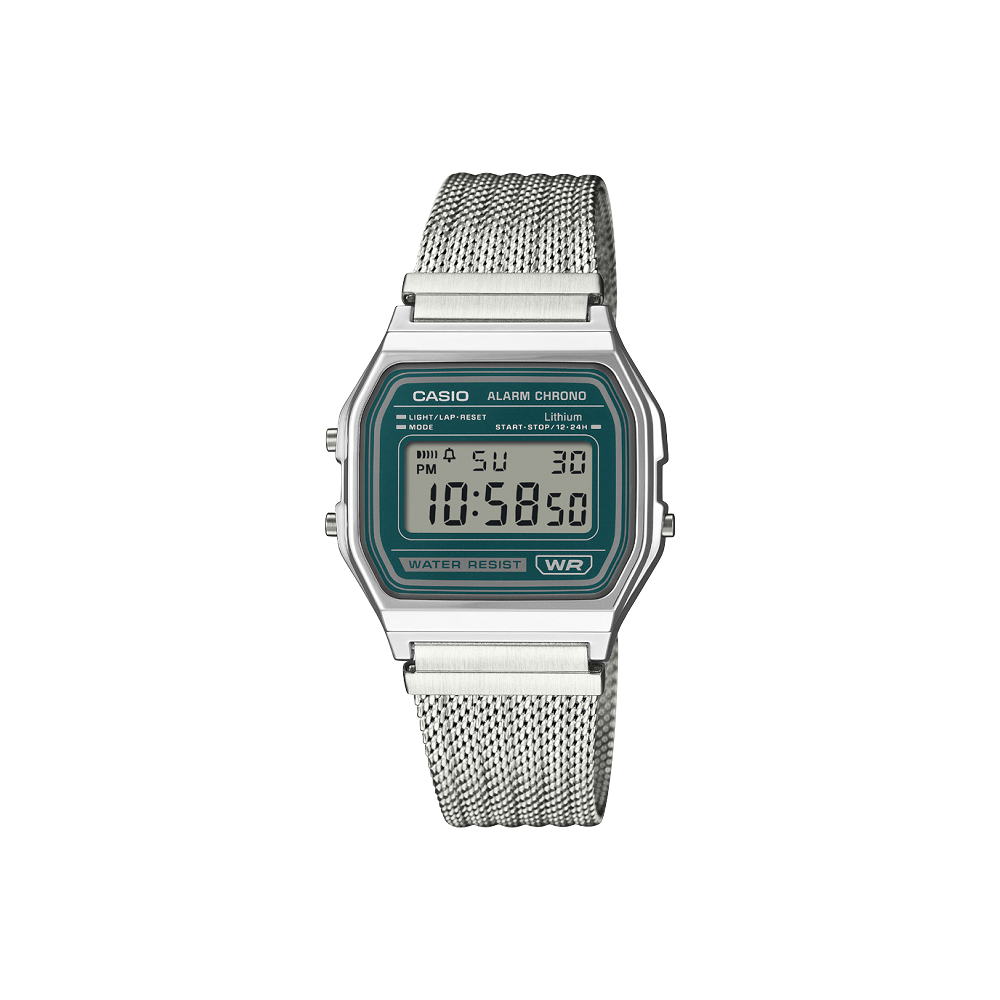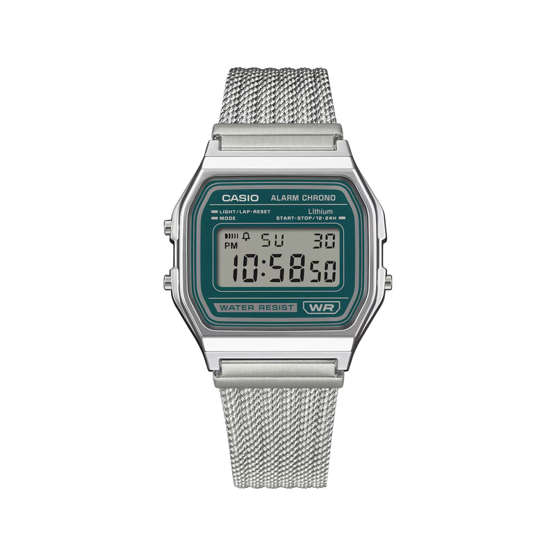 Casio Jam Tangan Unisex dengan format Digital A158WEM-3DF. Versi terbaru dari jam tangan klasik favorit — A158 yang selalu populer dan mudah digunakan tampil elegan dengan tali jam jala tenun halus. Diproses dengan proses pengepresan khusus yang menambah kedalaman dan dimensi, tali jam jala ini memberikan tampilan vintage yang halus dan sangat nyaman di pergelangan tangan Anda. Pilih dial berwarna hijau tua atau abu-abu muda. Casing berwarna perak dan dial yang kontras menghadirkan skema warna yang sederhana namun orisinal pada gaya Anda. Desain klasik ini menonjolkan keindahan jala logam untuk kehadiran yang halus dan elegan.