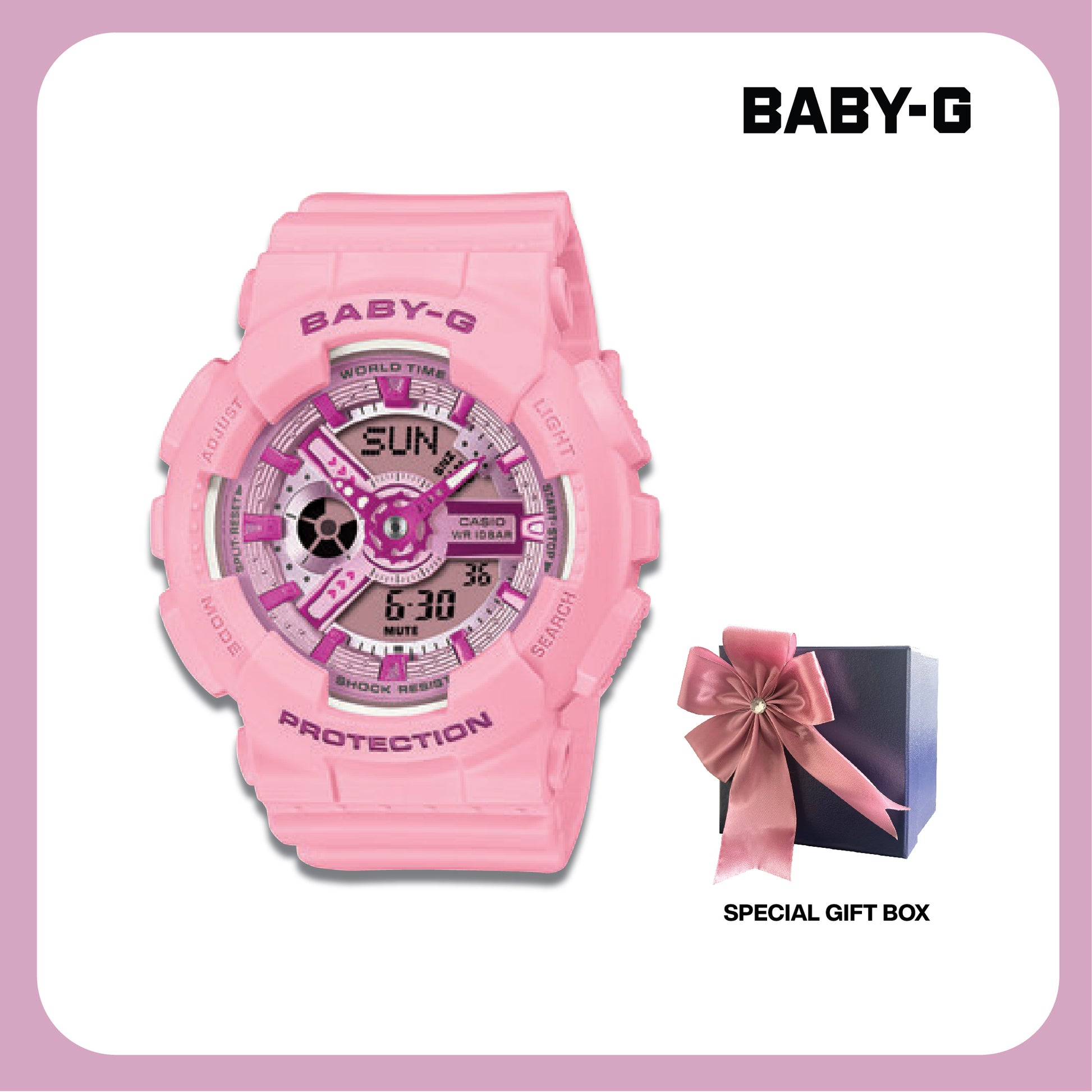 Casio Baby-G Jam Tangan Wanita dengan format Analog Digital. Berharap bisa kembali ke masa lalu? BABY-G yang terinspirasi oleh Y2K ini penuh dengan warna segar untuk membawa suasana pergantian milenium ke kehidupan aktif Anda hari ini.