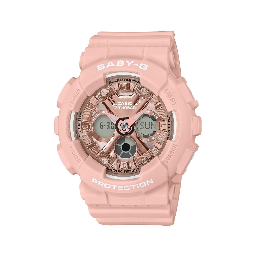 Model BA-130 yang keren dengan casing besar dan desain maskulin. Bagian muka jam tangan ini berwarna logam pada dasar merah muda untuk menghasilkan kilauan yang indah. Model ini menyempurnakan street fashion dengan memadukan desain maskulin dan tekstur matte. Model keren yang juga serasi dengan berbagai busana.