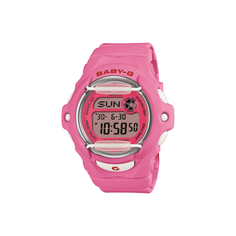Casio Baby-G Jam Tangan Wanita dengan format Digital BG-169CH-4DR. Apa artinya hidup tanpa hal yang baik diatasnya? Maksimalkan hari Anda dengan BABY-G dengan aksen merah ceri yang halus.