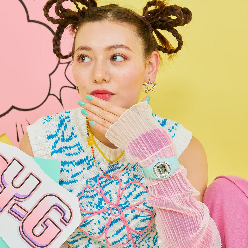 Casio Baby-G jam tangan wanita dengan format digital. Seri BG-169 dilengkapi dengan pelindung depan bulat yang memberikan ketahanan benturan. Itu juga dilengkapi dengan fitur-fitur yang nyaman seperti ketahanan air 20 bar.
