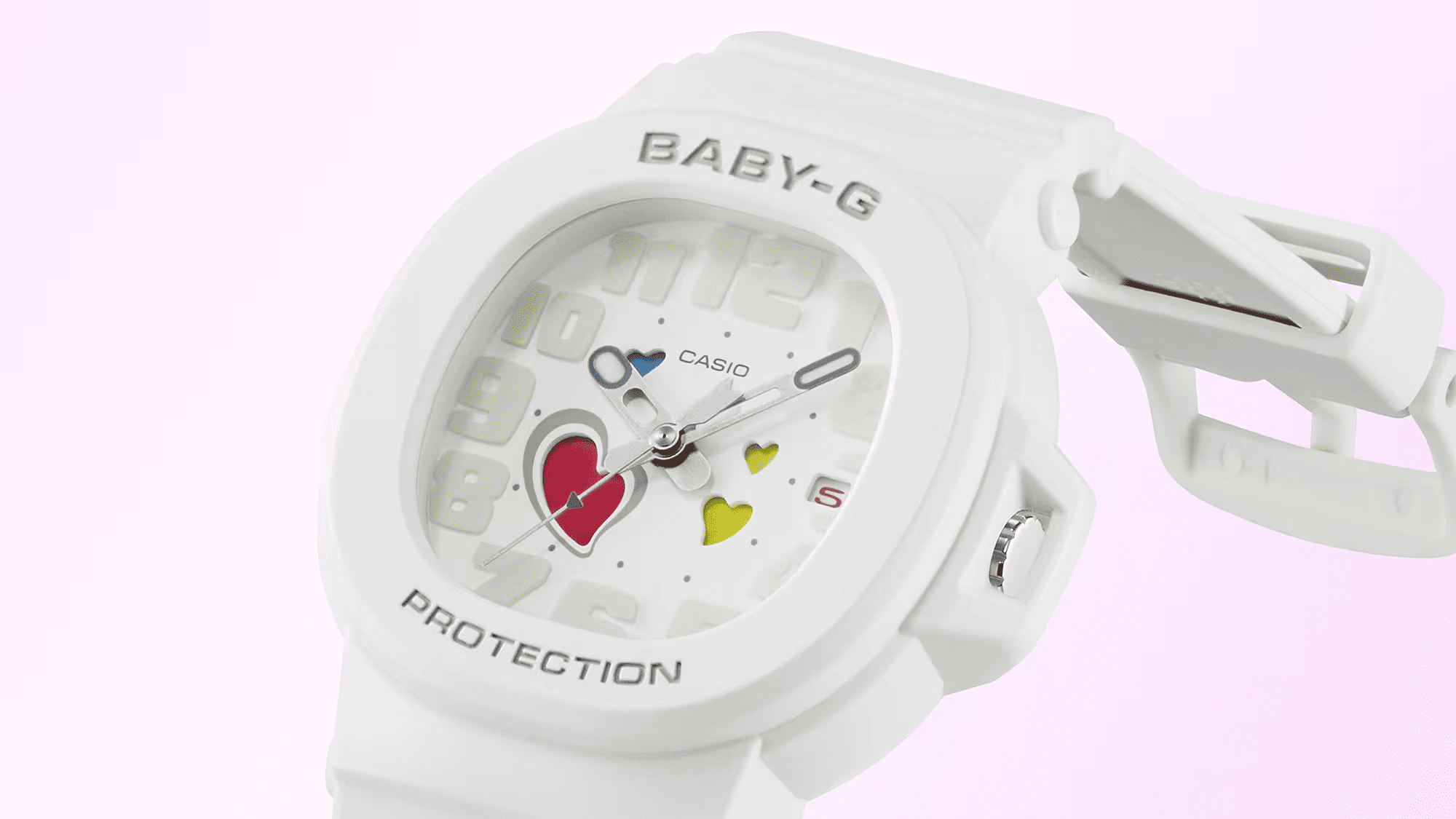 Manjakan sisi ceria Anda - BABY-G analog yang menampilkan motif hati yang dapat berubah warna.