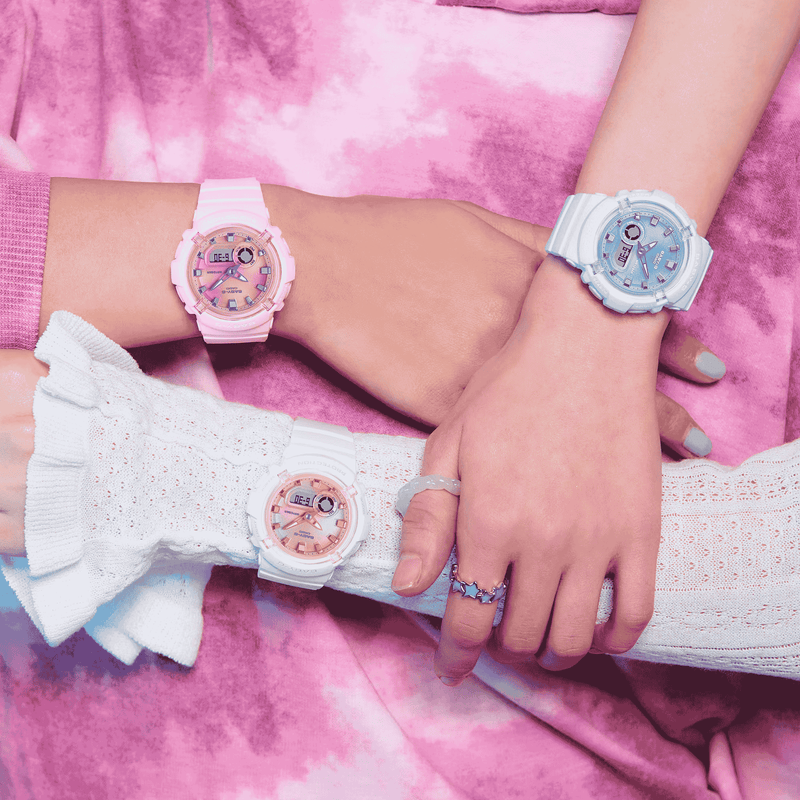 Kami mulai dengan desain wajah bulat BGA-280, melapisi dial tipis untuk menciptakan pola pewarna ikat dengan warna-warna lembut yang ceria dan menambahkan indeks dengan sentuhan akhir pengendapan uap untuk kilau dan kilau ekstra.