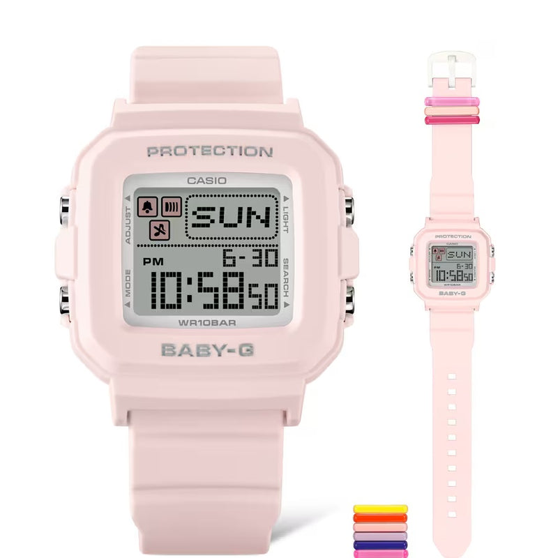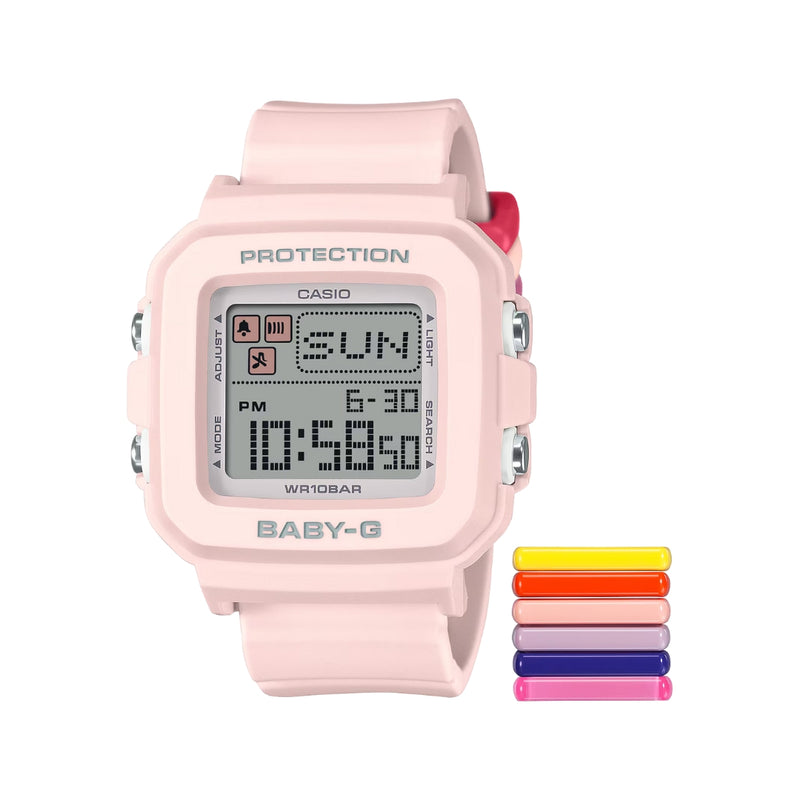 Casio Baby-G Jam Tangan Wanita dengan Format Digital BGD-10L-4DR. Padukan, padankan, ciptakan gaya Anda sendiri! Memperkenalkan jam tangan konvertibel yang menarik dengan lingkaran tali jam yang dapat saling ditukar dari rangkaian jam tangan superseru BABY-G+PLUS. Sesuaikan saja dengan gaya manis Anda.
