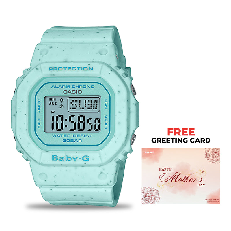 Casio Baby-G jam tangan wanita dengan format Digital. Desain casual dengan material resin. Menggunakan model warna campuran baru, tekstur es krim direproduksi dalam warna hijau mint dan stroberi. Semua model BABY-G baru cocok untuk dipadukan dengan fashion penuh warna.