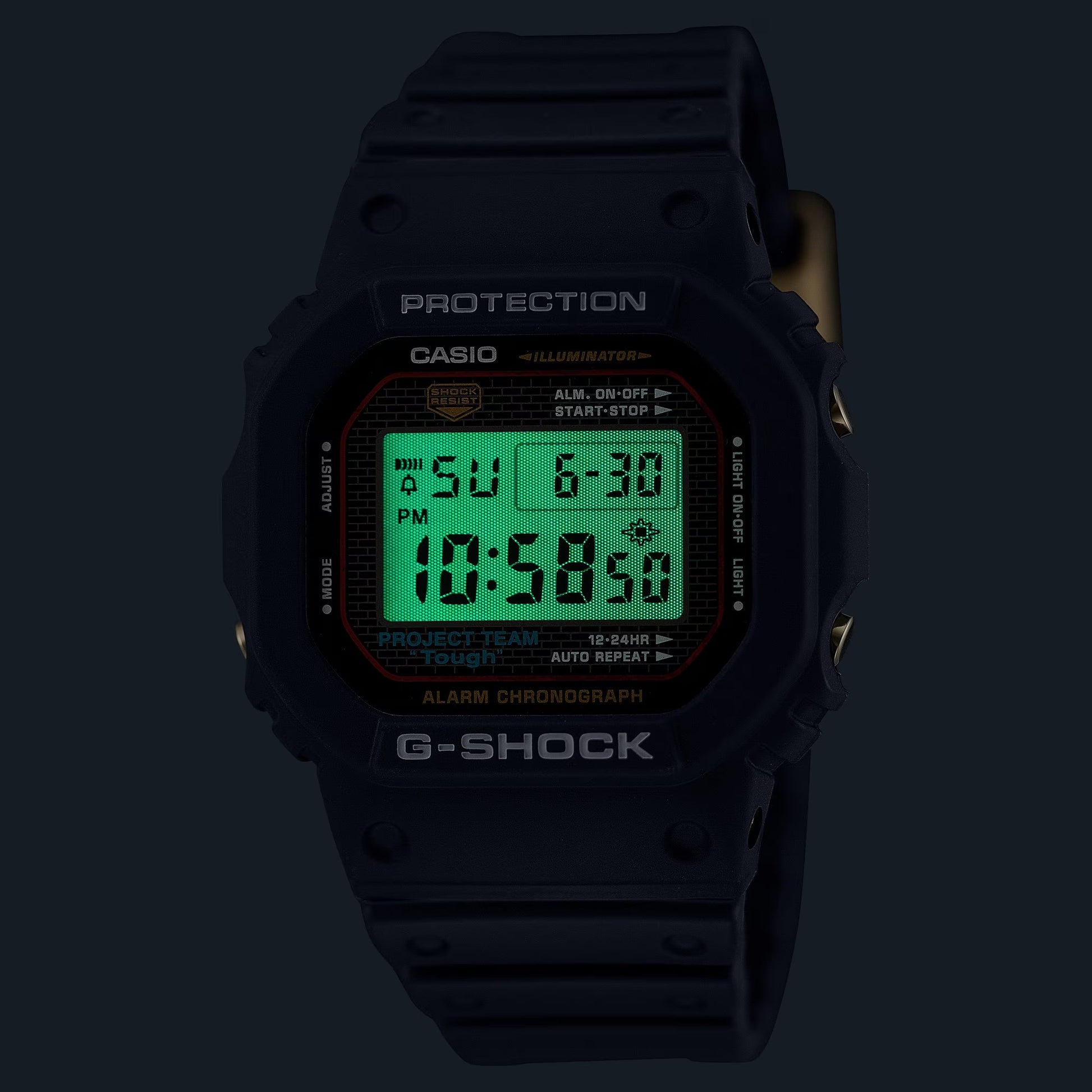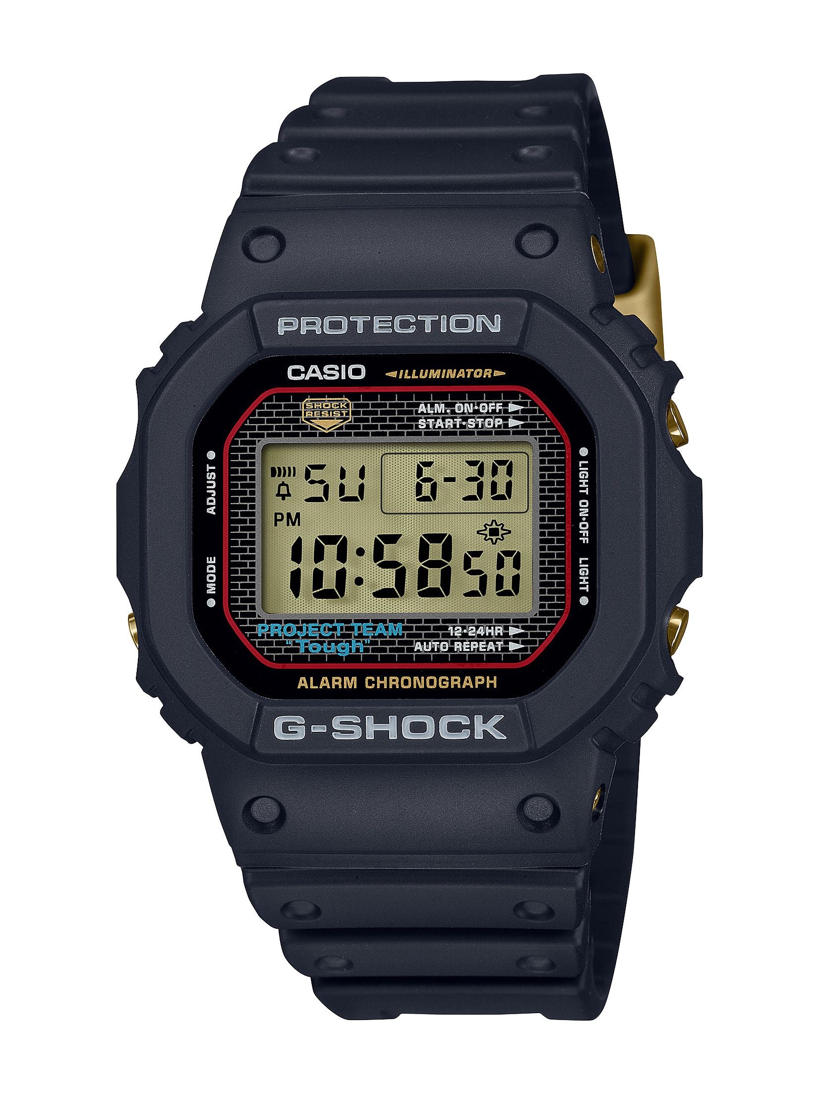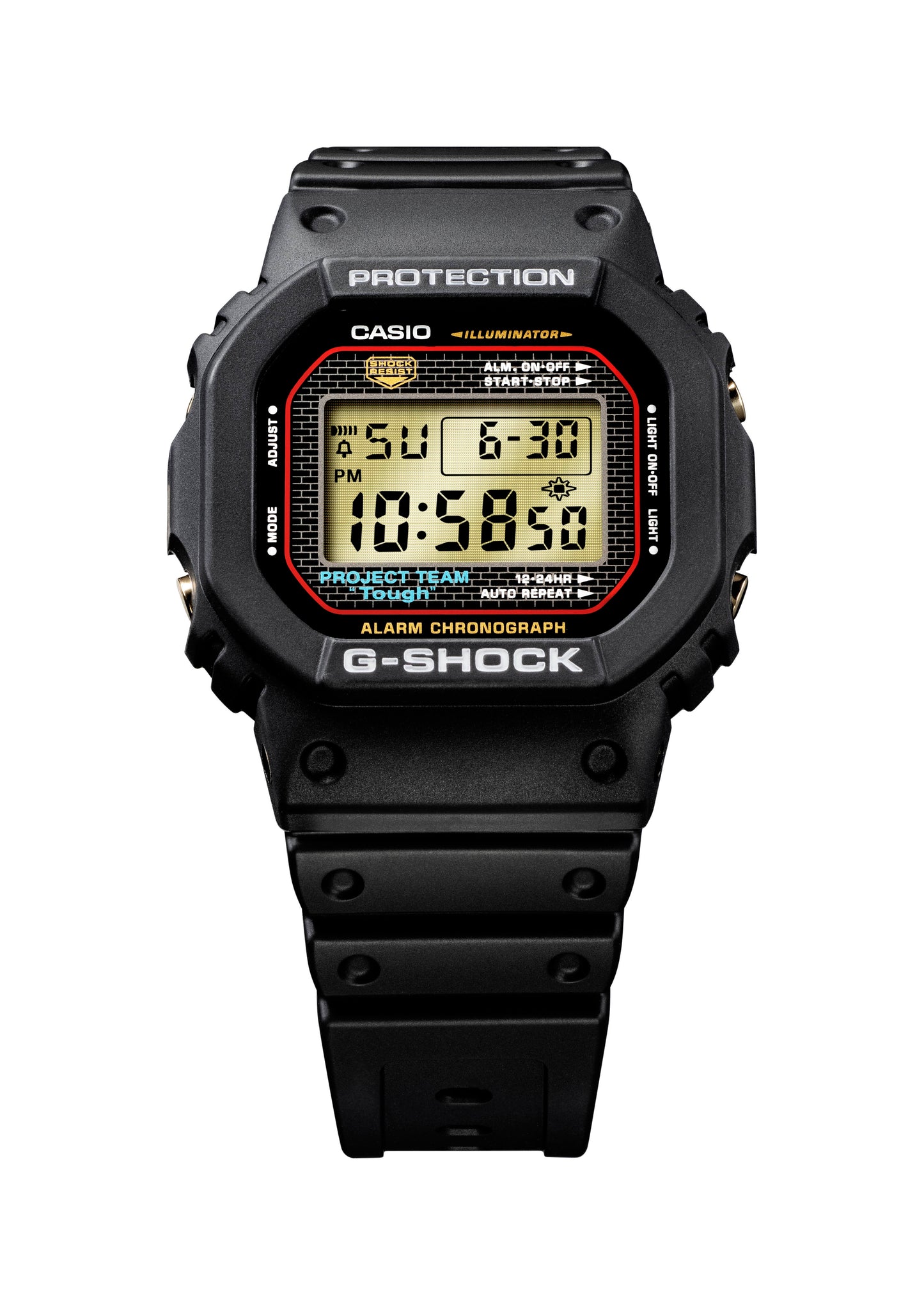 Casio G-Shock jam tangan pria dengan format digital. Dengan pertegas pernyataan diri Anda dengan kesan pasti dan mantap melalui penunjuk waktu edisi terbatas G-SHOCK 40th Anniversary Recrystallized. Kami merayakan ulang tahun ini dengan DW-5040PG — sebuah formasi inovatif baru dari G-SHOCK pertama, DW-5000, yang didebutkan 40 tahun yang lalu pada April 1983. Penunjuk waktu edisi terbatas ini dipenuhi dengan baja anti karat bersepuh dan berlapis khusus yang dikeraskan yang dirancang khusus untuk mendukung gaya pelari. Proses penyepuhan dan pengerasan berlapis dalam diterapkan pada bagian belakang casing kunci sekrup, gesper, dan simpul tali jam. Bagian belakang casing berlapis ion hitam, gesper berlapis ion emas, dan tali jam bersatu padu menghadirkan tampilan orisinal cahaya yang mengagumkan. Untuk membantu mengurangi dampak lingkungan, bezel dan tali jam dibuat dari plastik biomassa. Tali jam tangan diberi grafir empat bintang sebagai simbol 40 tahun, sementara kata “PROJECT TEAM ‘Tough’” pada dial merupakan tribut bagi tim yang mengembangkan G-SHOCK pertama. Casing belakang diberi grafir logo 40th hasil desain Eric Haze dan tombol kiri bawah diberi grafir bintang sebagai simbol penunjuk waktu yang mengabadikan perayaan ulang tahun ke-40 G-SHOCK.