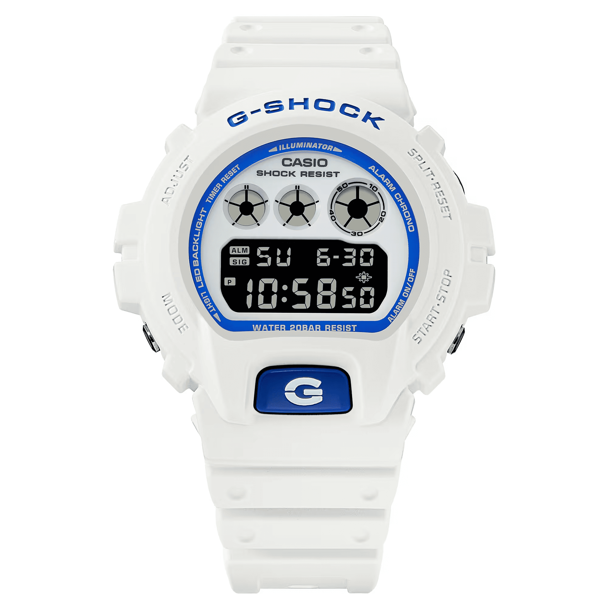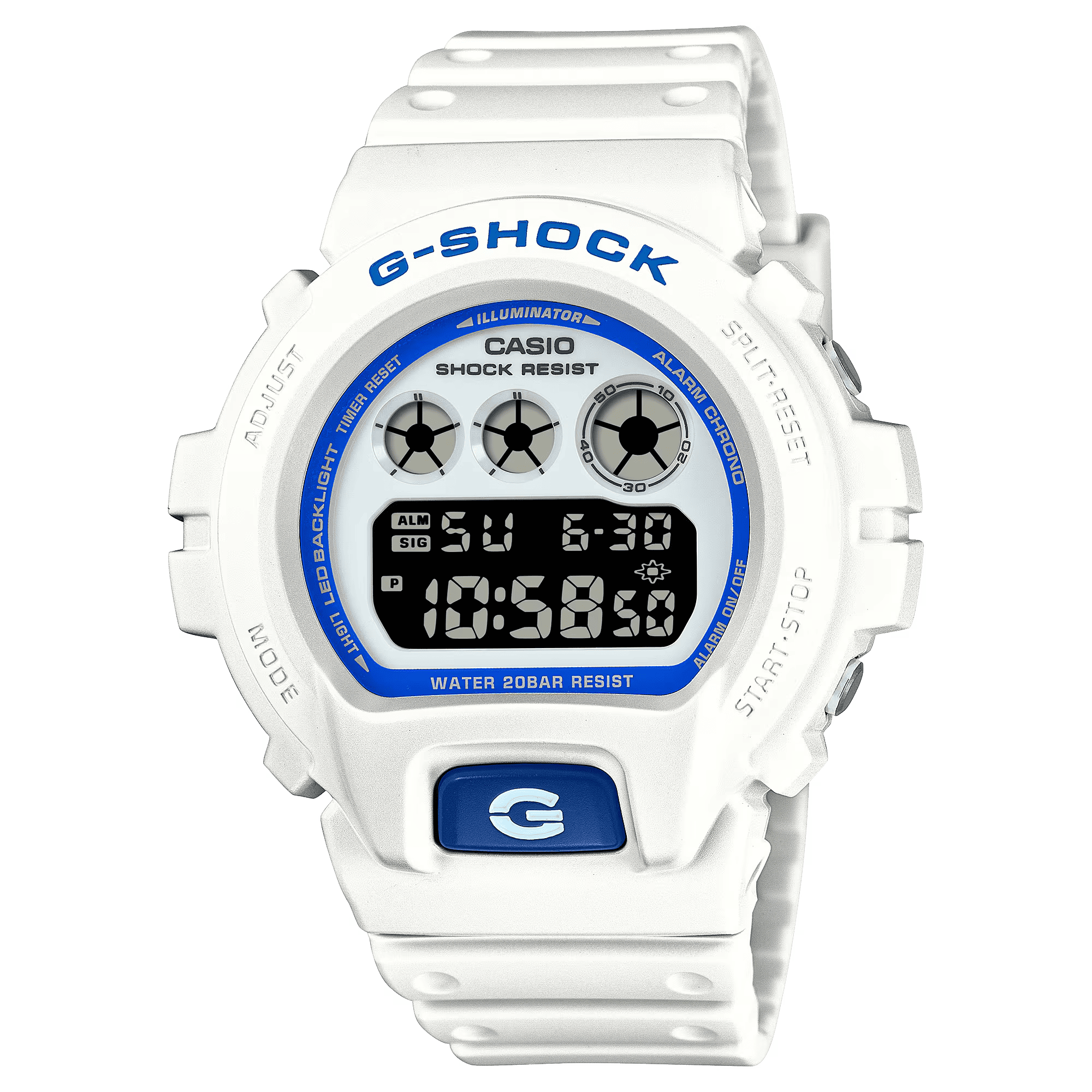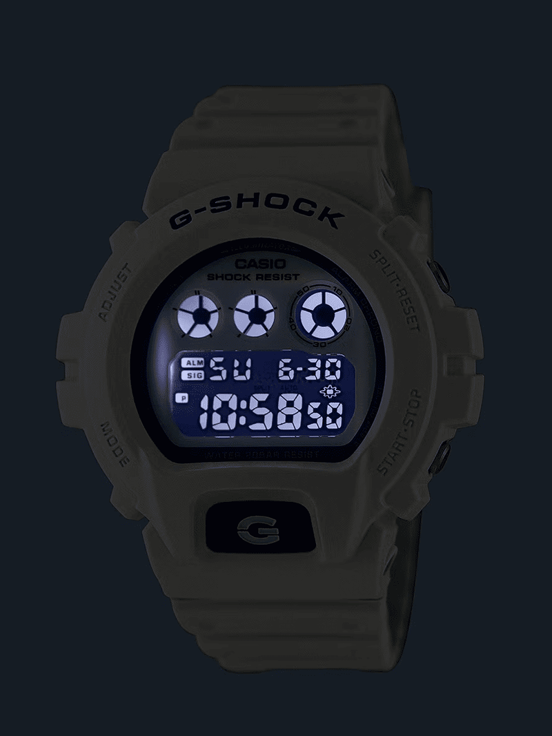 Casio G-Shock Jam Tangan Pria dengan format Digital DW-6900HDS-7A1DR. Dapatkan inspirasi Anda dari laut musim panas, dengan G-SHOCK warna putih dan biru. Bagian depan jam tangan yang berpendar biru akan bersinar secara ajaib di malam hari, membangkitkan kilau plankton yang mengambang di laut. Dipasangkan dengan skema warna putih dan biru, desainnya dengan indah menangkap transformasi dinamis pantai dari kecemerlangan matahari siang hari ke warna malam hari yang lembut. Gaya berkilau yang terinspirasi dari laut ini dapat dengan mudah mengalir dari suasana santai hingga situasi kerja.