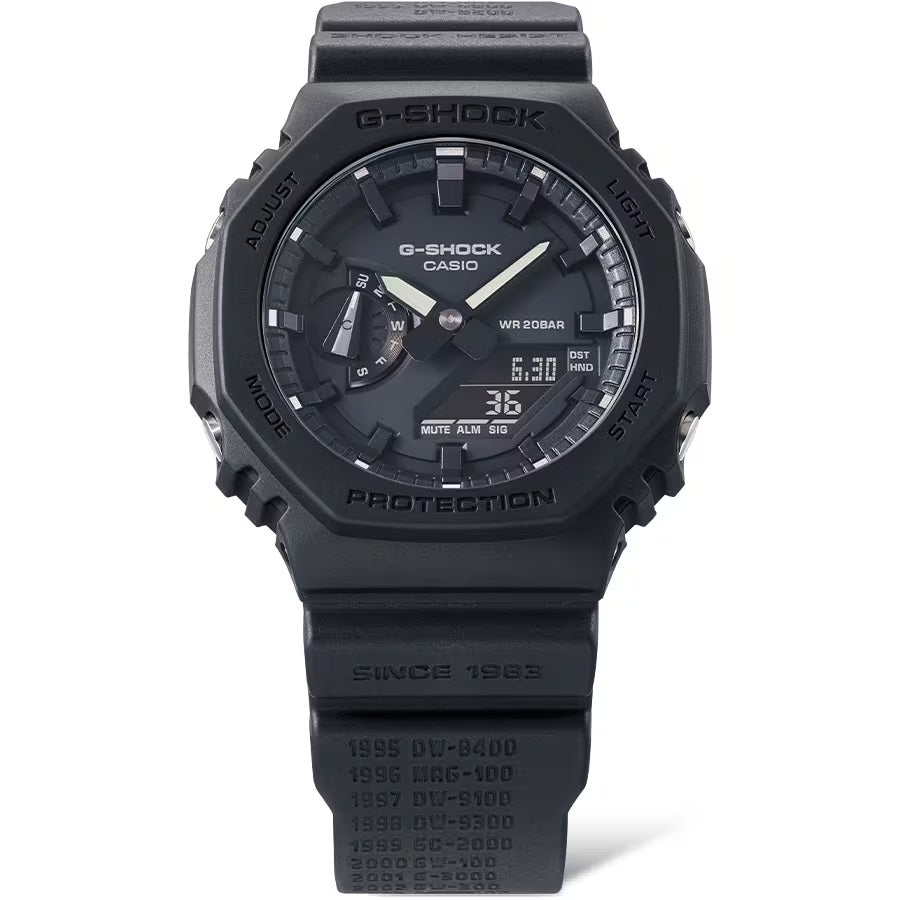 Sebagai penghormatan terhadap evolusi merek, desain khusus ini mengabadikan model-model ikonik dari masa lalu dengan nama mereka yang diberi stempel panas pada tali jam menjadi efek tekstur dan indentasi. Pada DWE-5657, DW-6640, dan GA-2140, tombol samping diukir dengan bintang sebagai penanda hari jadi ke-40, seperti GA-114 dengan bintang tercetak di kaca arloji.