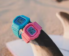 Desain G-SHOCK yang bersih dan etis yang mewujudkan kecintaan terhadap alam dan warna yang disukai para peselancar.