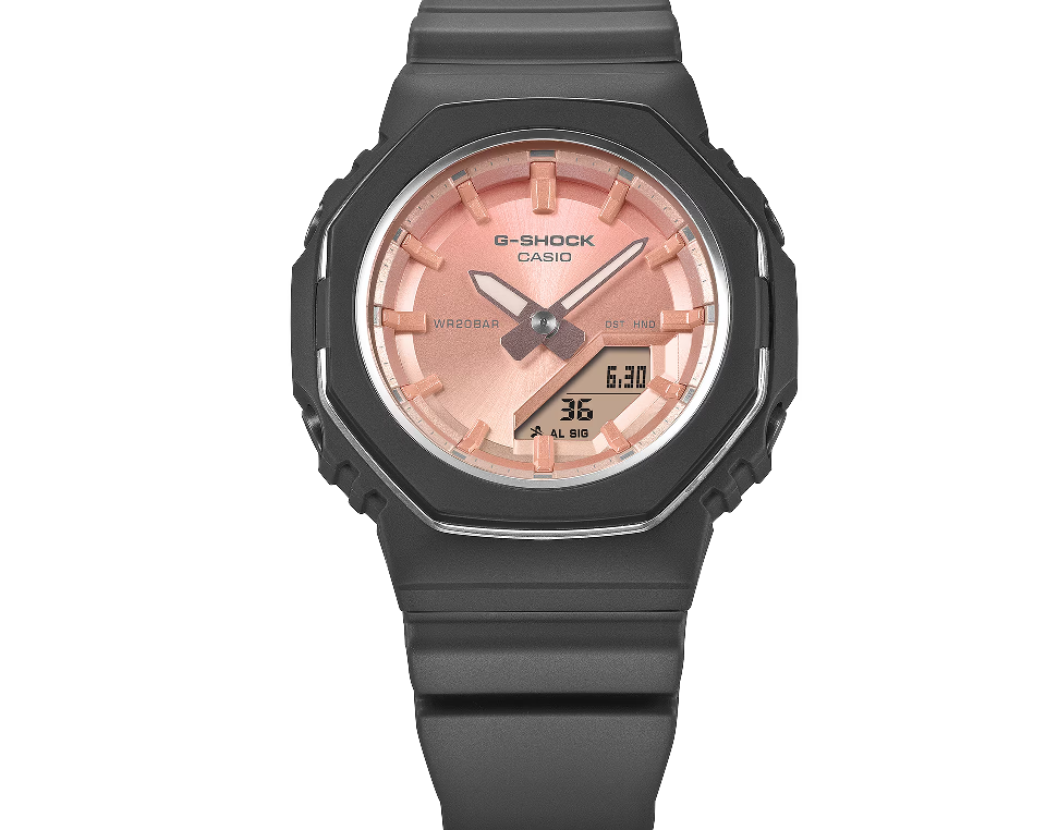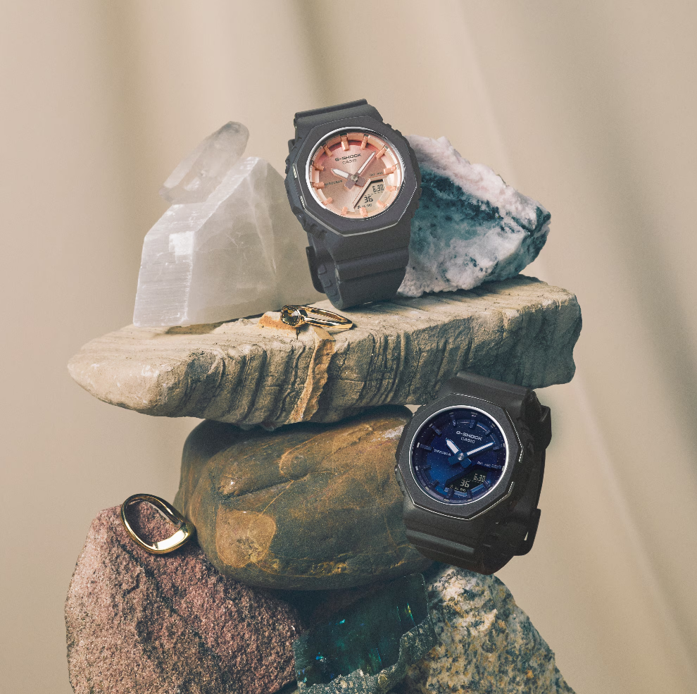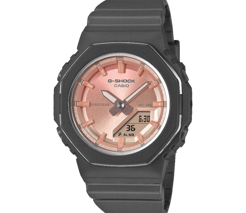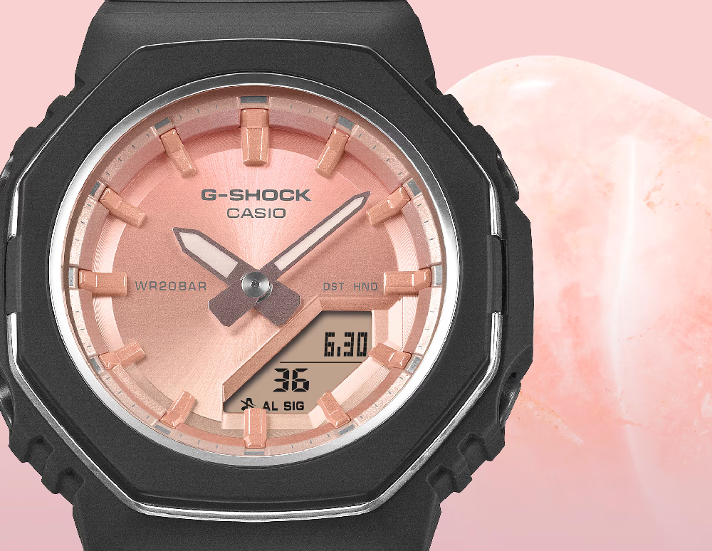 Casio G-SHOCK Jam Tangan Wanita dengan format Analog Digital GMA-P2110SC-4ADR. Hidupkan kembali kehidupan sehari-hari Anda dengan warna-warna alam yang memukau — jam tangan G-SHOCK GMA-P2110SC membangkitkan keindahan batu alam yang mendalam. Lapis lazuli dan kuarsa mawar hidup kembali dalam nuansa biru tua dan merah muda pucat. GMA-P2110SC-2A menampilkan cetakan mutiara yang menangkap tampilan bintik-bintik unik lapis lazuli, sementara GMA-P2110SC-4A menangkap kelembutan kuarsa mawar dengan gradasi warna yang halus. Dial, yang terbuat dari bahan logam, memastikan kecanggihan yang halus. Jam tangan ini menangkap makna simbolis dari batu yang diwakilinya — keberuntungan lapis lazuli dan keindahan serta kesehatan kuarsa mawar. Berikan hadiah dengan pesan mendalam kepada seseorang yang spesial atau lengkapi penampilan Anda dengan gaya untuk musim liburan. Komponen resin utama yang digunakan pada bezel dan tali jam terbuat dari resin berbasis bio. Diproduksi menggunakan sumber daya organik terbarukan, material ini diharapkan dapat membantu mengurangi dampak lingkungan.
