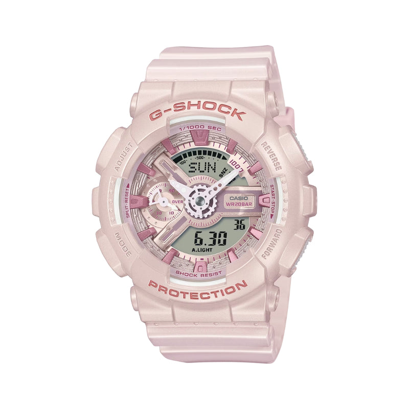 Kini dalam tiga variasi warna lembut, GMA-S110 hadir dalam versi baru merah muda dan biru, serta putih serbaguna untuk dipadukan dengan semua mode favorit Anda.