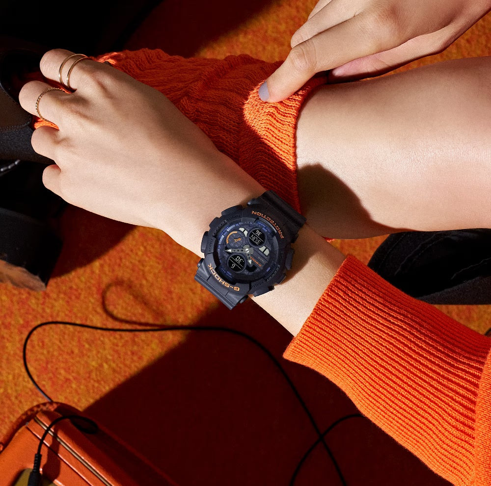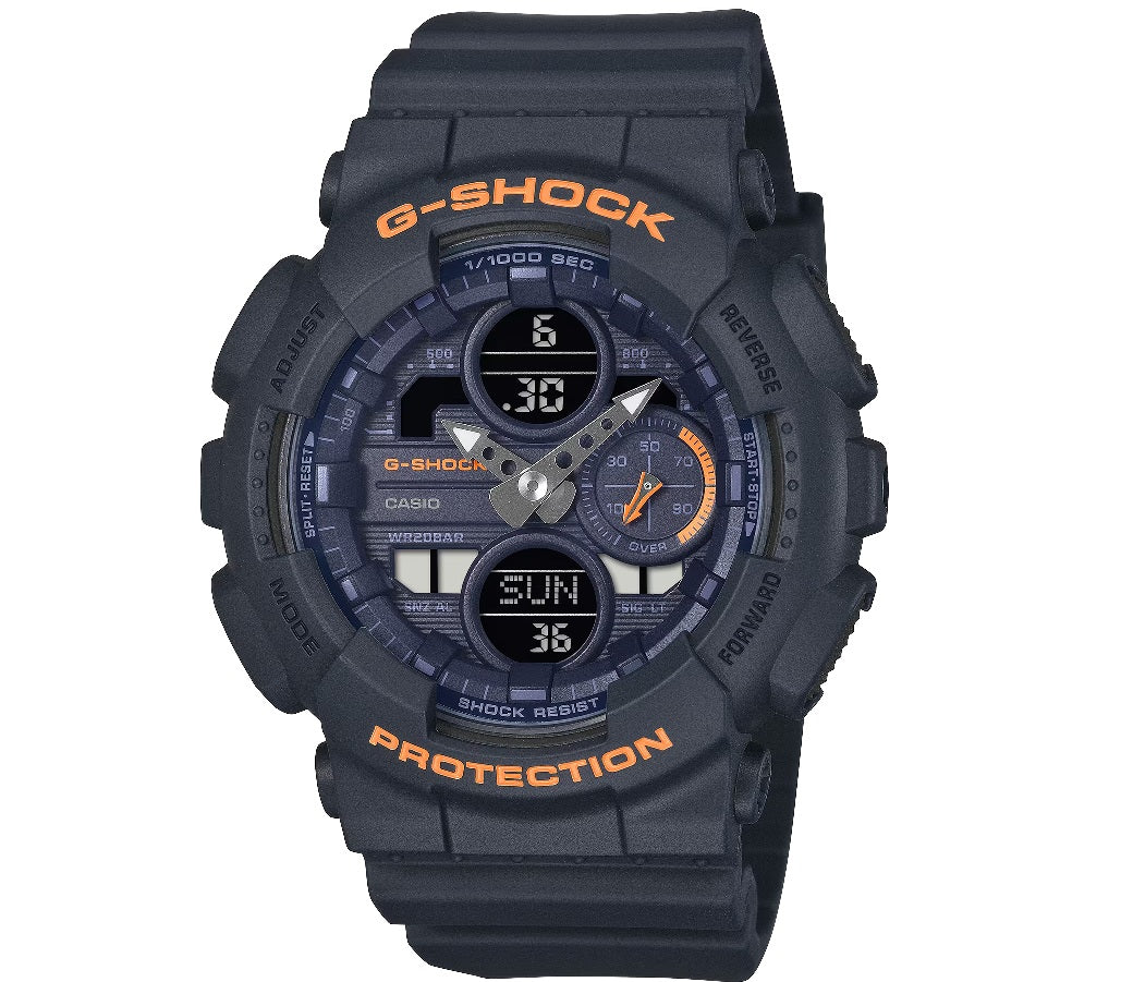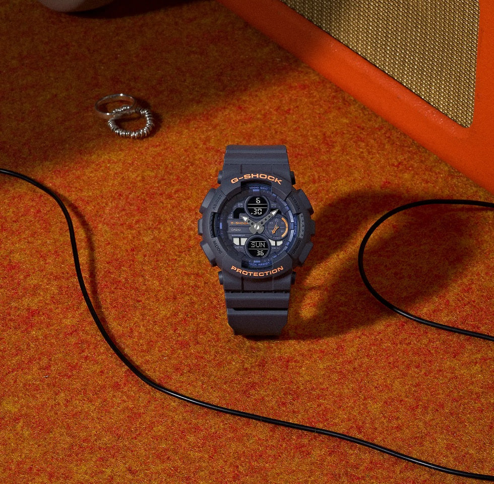 Casio G-SHOCK Jam Tangan Wanita dengan format Analog Digital GMA-S140-2A2DR. Cerahkan hari Anda dengan G-SHOCK navy yang mudah dipakai dengan sentuhan orange matte yang hangat. Nada abu-abu pada indikator mode dan fitur serta lapisan matte secara keseluruhan menghadirkan tampilan yang halus, bersih, dan percaya diri tanpa usaha. Dirancang dengan cermat hingga detail terkecil, jam tangan ini melengkapi gaya apapun — aksesori ideal untuk menghadirkan sentuhan warna halus pada pakaian kasual sehari-hari. Komponen utama untuk bezel dan tali jam terbuat dari resin berbasis bio. Diproduksi menggunakan sumber daya organik terbarukan, material ini diharapkan dapat membantu mengurangi dampak lingkungan.