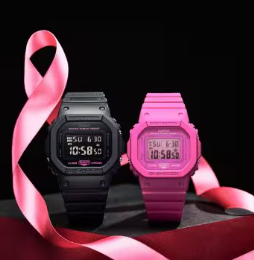 Mari lawan kanker payudara bersama DW-5600PK, G-SHOCK hitam dengan sedikit aksen merah muda, atau GMD-S5610PK merah muda dengan desain yang lebih ringkas. Jam G-SHOCK ini merupakan simbol komitmen Casio terhadap kampanye pita merah muda yang memiliki misi untuk meningkatkan kesadaran terhadap pentingnya deteksi dini, diagnosis, dan pengobatan kanker payudara. G-SHOCK dan Pita Merah Muda adalah sepasang sahabat yang sama-sama berdedikasi membentuk dunia tempat semua orang hidup sehat, bebas menjadi dirinya sendiri, dan beraktivitas tanpa dihalangi penyakit. Untuk berpartisipasi dalam gerakan ini bersama G-SHOCK, temukan informasi seputar kampanye dan acara penggalangan dana pada bulan kesadaran kanker “Pink October” yang semarak dihiasi pita merah muda di seluruh penjuru dunia.