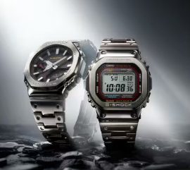 Meneruskan warisan G-SHOCK - tampil tradisional dengan warna-warna dial asli DW-5000C, G-SHOCK pertama, yang kini hadir dalam bentuk jam tangan logam penuh.
