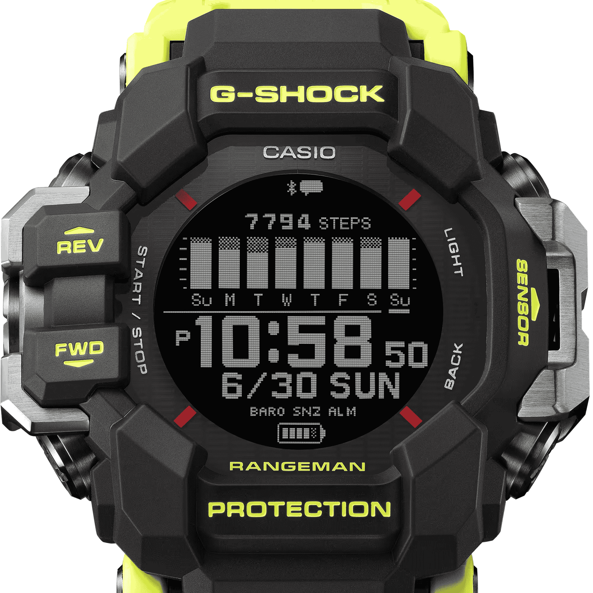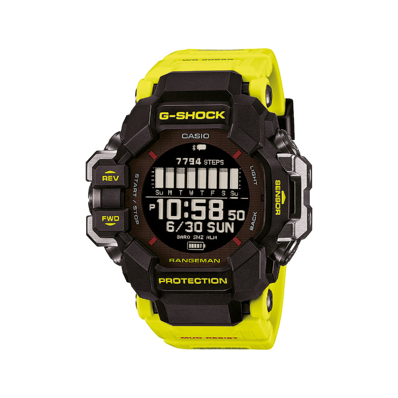 RANGEMAN GPR-H1000RY dibuat dengan struktur yang tahan debu, lumpur, dan goncangan serta dilengkapi dengan enam sensor yang dapat melakukan berbagai pengukuran termasuk detak jantung, dan dengan GPS internal untuk mengukur lokasi, jarak, dan kecepatan perjalanan. Pantau kondisi fisik Anda secara real time selama 9 aktivitas yang berbeda, termasuk trekking.