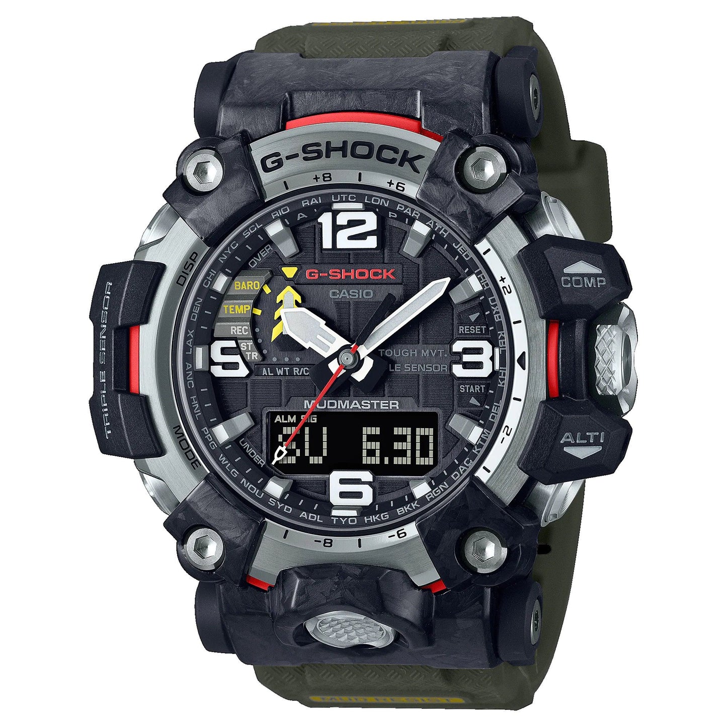 Casio G-Shock jam tangan pria dalam format Analog Digital. Dengan tampilan yang kuat, hadapi medan yang paling berat dengan G-SHOCK MUDMASTER, dirancang untuk menghadapi medan darat paling sulit. Jam tangan tahan guncangan ini dibuat agar tahan terhadap lumpur dan pasir yang Anda mungkin temukan, dan jam ini memanfaatkan teknologi eksterior terbaru kami untuk profil jam yang lebih ramping dengan ukuran yang lebih pas. Desain ringkas ini dapat dihasilkan berkat bezel karbon yang ditempa, struktur casing pelindung inti karbon, dan tombol tahan lumpur yang dipadukan dengan pipa baja tahan karat dan penyangga silikon. Pengukuran tiga sensor membantu Anda agar terus mendapatkan informasi terbaru terkait pembacaan arah, ketinggian, tekanan barometrik, dan suhu. Indeks angka Arab besar, jarum jam berbentuk panah ekstra tebal, lampu LED ganda, serta kaca safir memastikan visibilitas yang tinggi.