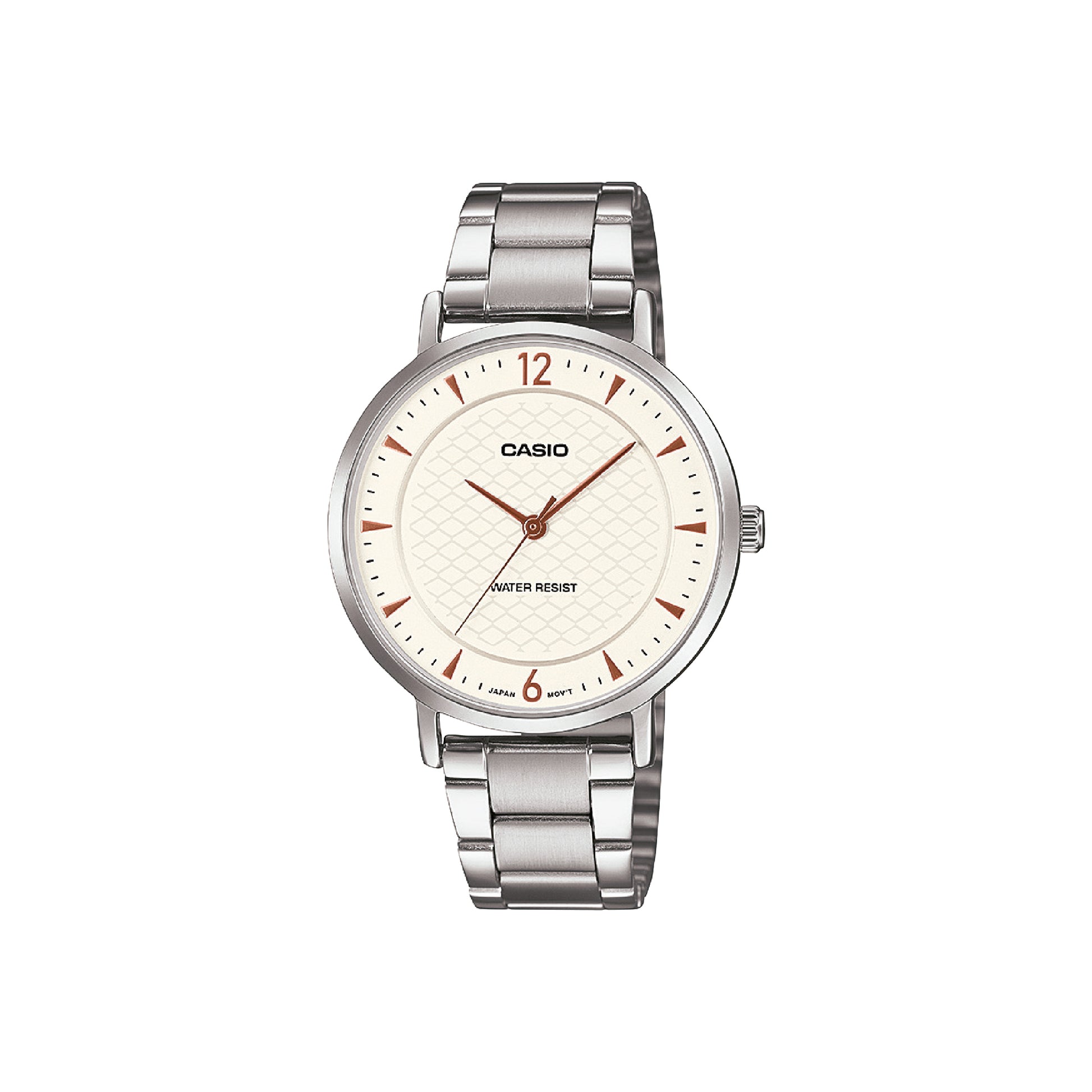 Casio Jam Tangan Wanita dengan format Analog LTP-VT04D-7ADF. Hargai kedalaman dan dimensi jam tangan yang didesain sederhana dengan pelat jam berbentuk cekung yang melingkari pergelangan tangan.