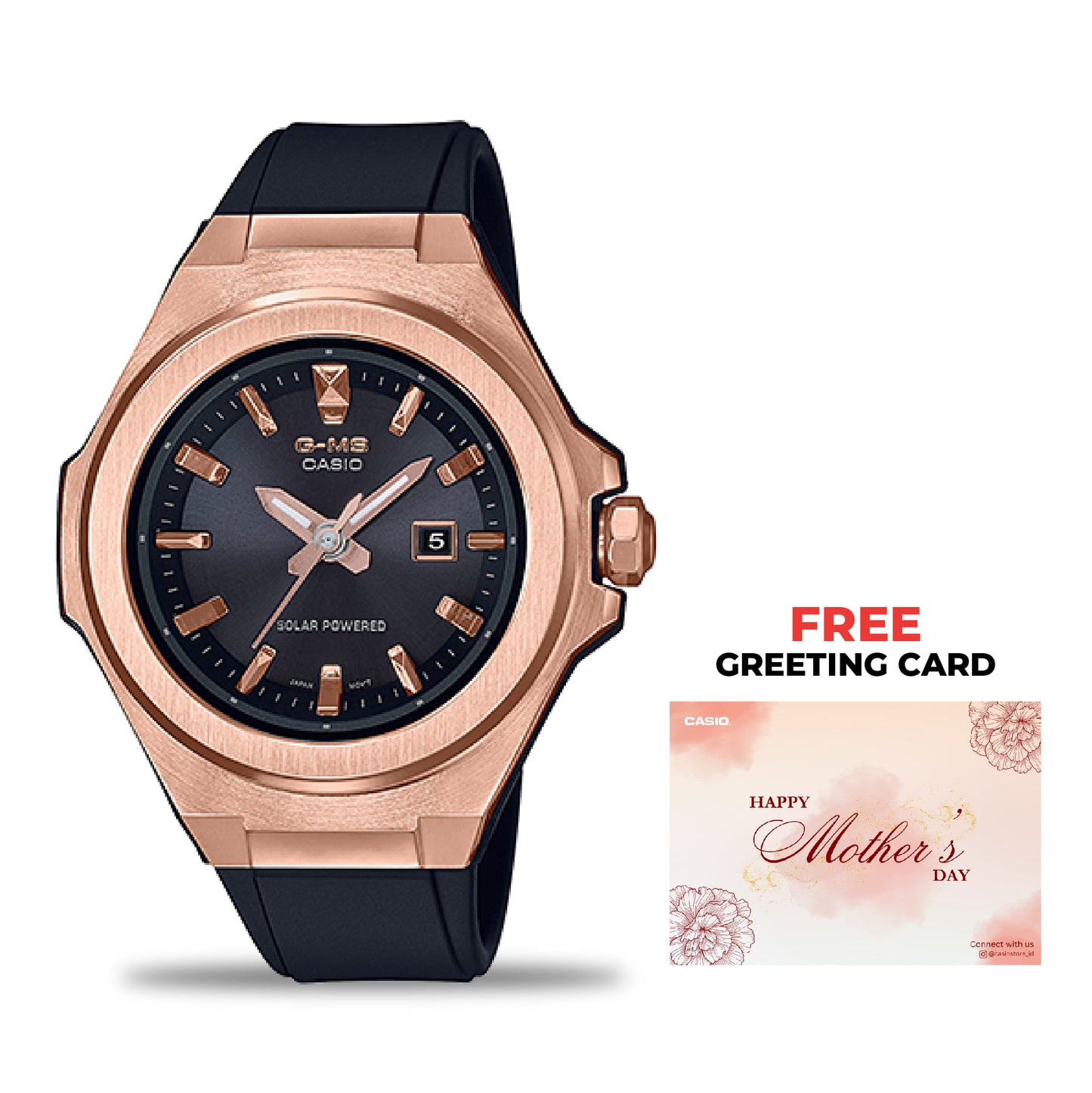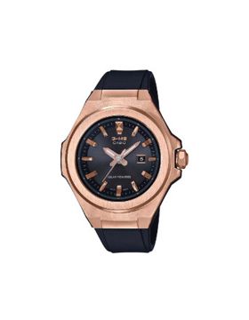 Jam tangan Casio Baby-G wanita dengan format analog. BABY-G G-MS, jajaran jam tangan untuk wanita aktif dan cerdas masa kini, mengumumkan model baru yang keren dengan desain sederhana dan sangat elegan. Bezel datar dan tajam, potongan piramid pada penanda jam, kenop berbentuk segi delapan, dan berbagai faktor lainnya berpadu untuk menciptakan penunjuk waktu modern yang atraktif. Tali jam tangan terbuat dari resin yang memberikan kesan sporty dan sempurna untuk fashion kasual dewasa. Model ini menampilkan casing tipis yang terlihat keren untuk dipakai ke mana saja, tiga jarum penunjuk waktu dan tampilan tanggal, sistem tenaga surya, dan ketahanan air 100 meter. Model G-MS baru ini adalah pilihan bagus untuk bekerja, bersenang-senang, dan segala aktivitas lainnya.