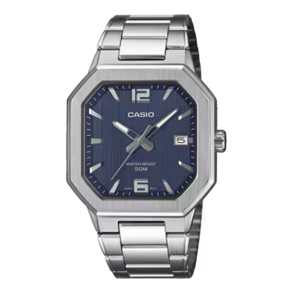Tampilkan kesan sporty yang kuat dengan tekstur logam yang detail dan garis-garis sudut yang ramping. Casing baja tahan karat yang tajam dan mengkilap melengkapi setiap kesempatan, dari pertemuan bisnis hingga acara santai. Tidak hanya bergaya, tetapi juga praktis — dengan ketahanan air hingga 50 meter dan tampilan tanggal yang mudah digunakan.