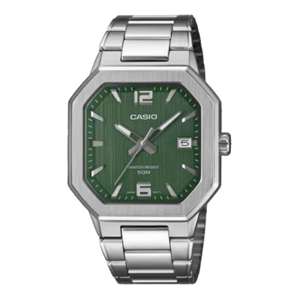 Tampilkan kesan sporty yang kuat dengan tekstur logam yang detail dan garis-garis sudut yang ramping. Casing baja tahan karat yang tajam dan mengkilap melengkapi setiap kesempatan, dari pertemuan bisnis hingga acara santai. Tidak hanya bergaya, tetapi juga praktis — dengan ketahanan air hingga 50 meter dan tampilan tanggal yang mudah digunakan.