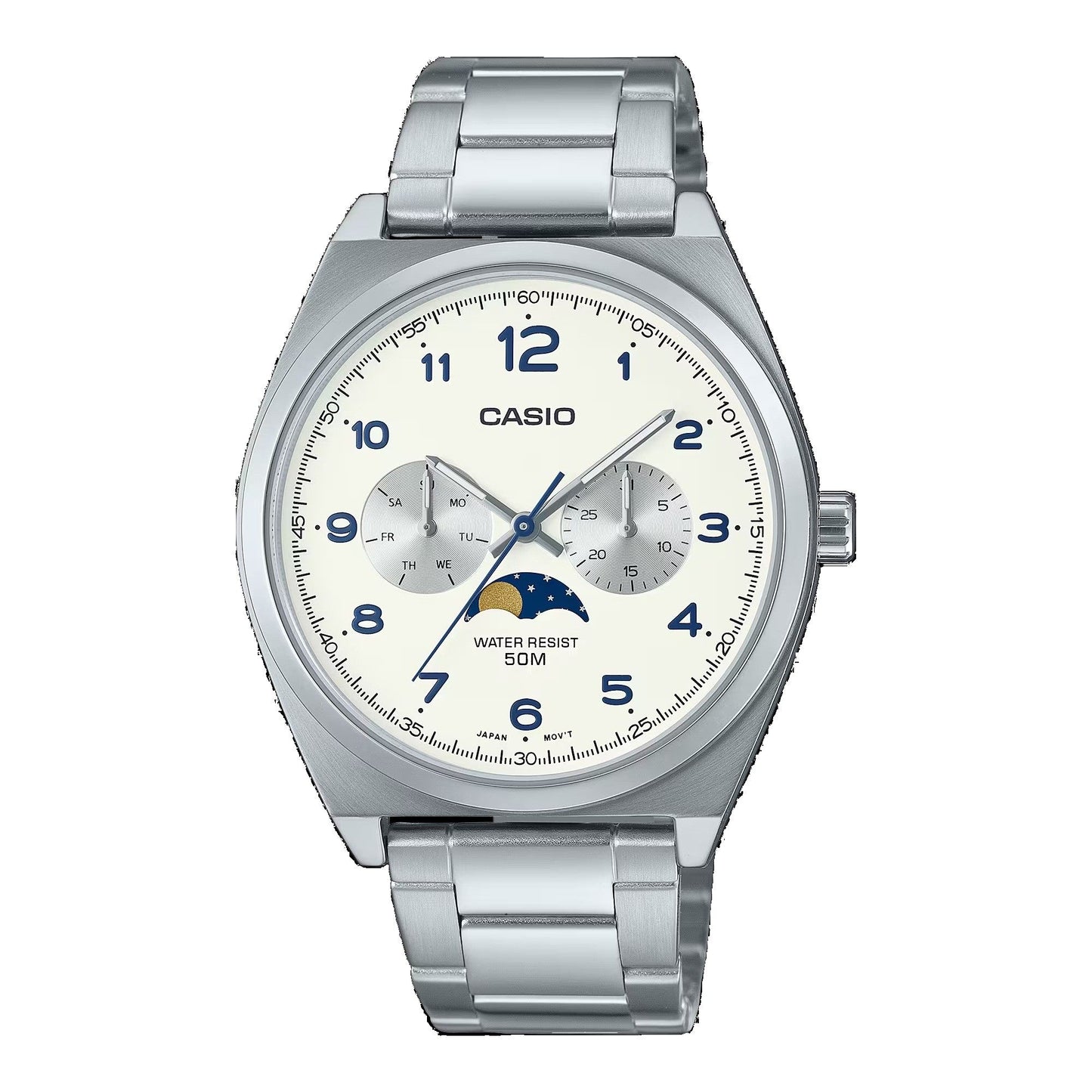 Casio jam tangan pria dalam format analog. Dengan tampilan yang menarik. Ke bulan dan kembali — lacak fase bulan dengan penunjuk waktu analog mencolok yang menampilkan beberapa dial sisipan.