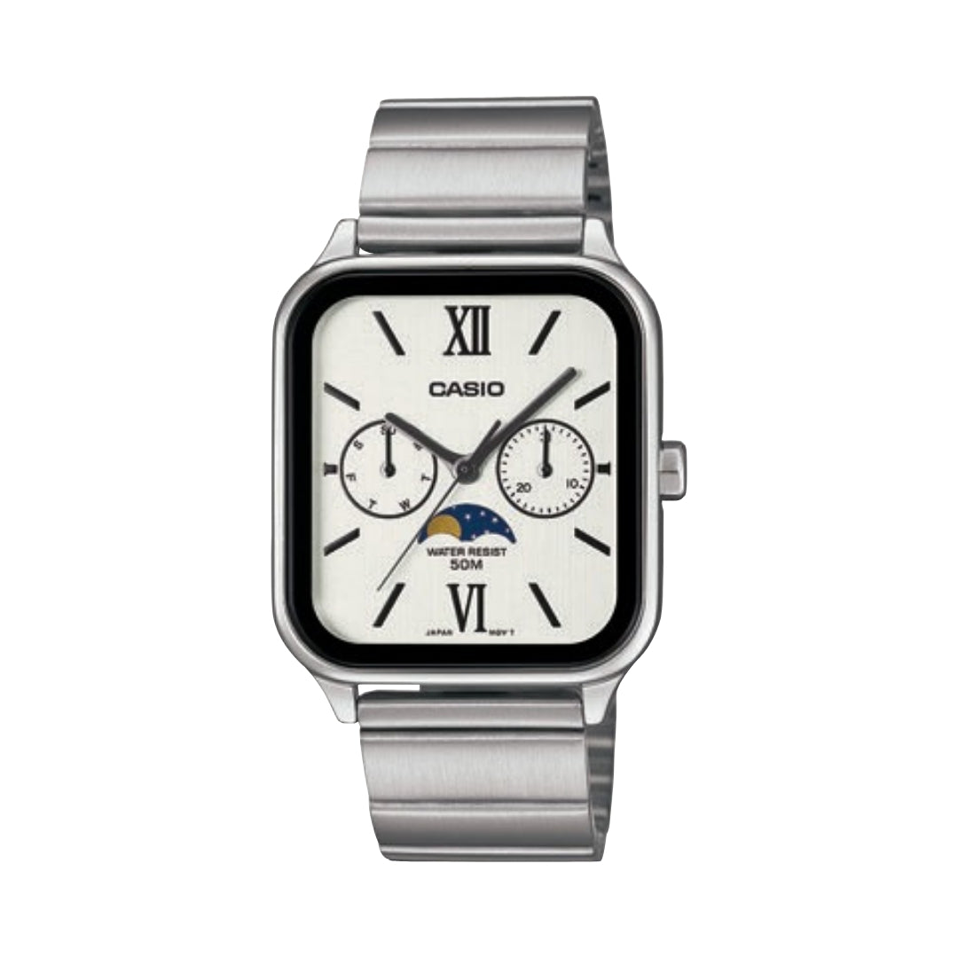 Casio Jam Tangan Pria dengan format Analog. Ke bulan dan sebaliknya — lacak fase bulan dengan penunjuk waktu analog mencolok yang menampilkan beberapa dial sisipan.