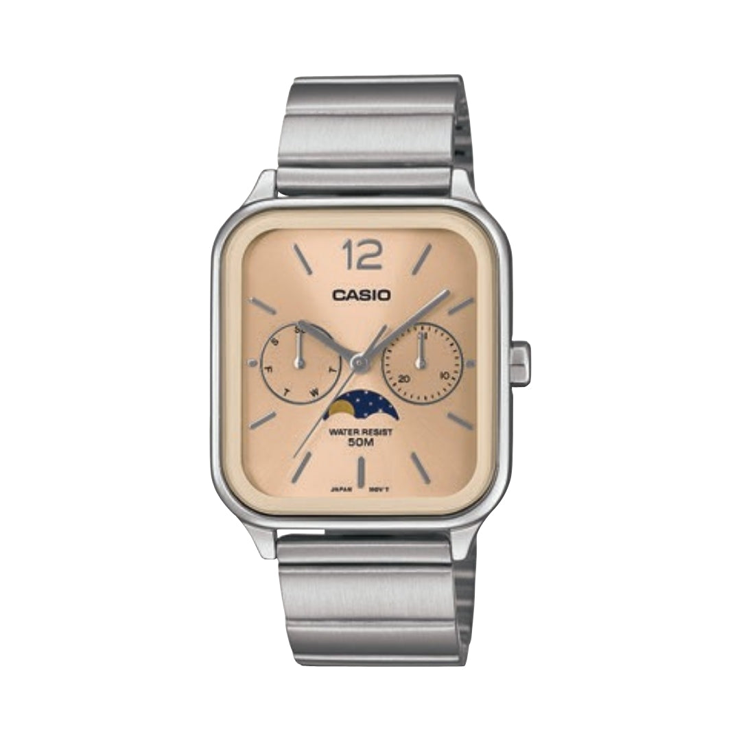 Casio Jam Tangan Pria dengan format Analog. Ke bulan dan sebaliknya — lacak fase bulan dengan penunjuk waktu analog mencolok yang menampilkan beberapa dial sisipan.
