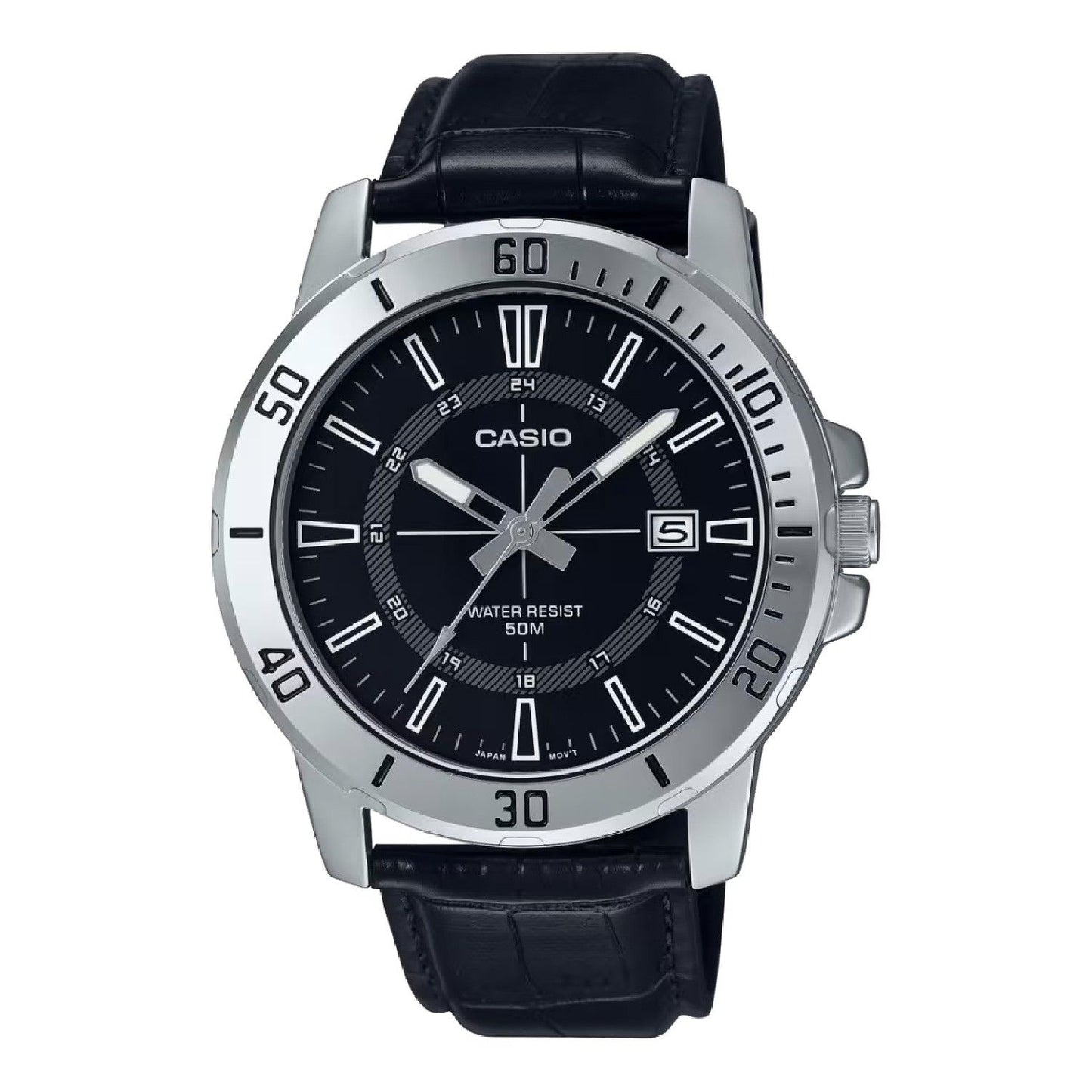 Casio Jam Tangan Pria dengan format Analog. Bergaya sporty dan keren dalam balutan jam tangan analog logam dengan bezel tebal.