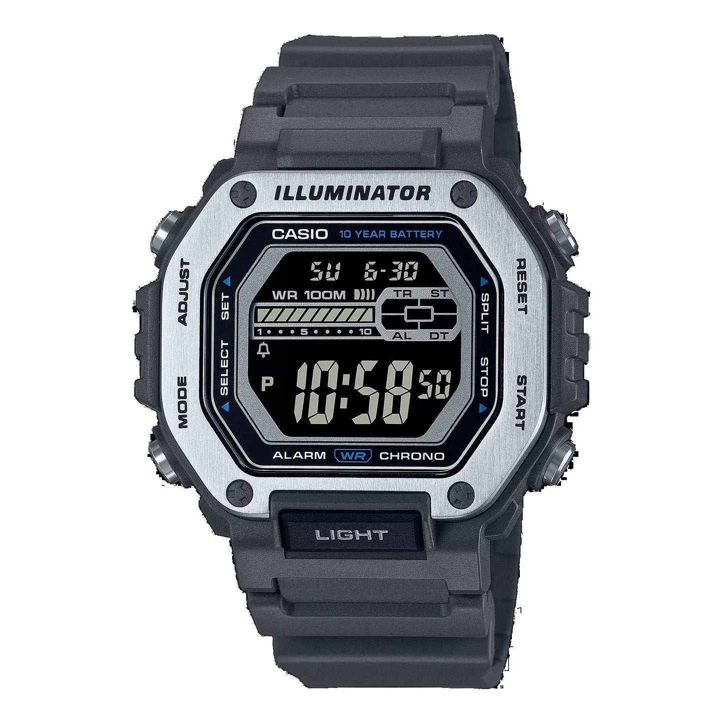 Casio jam tangan pria dalam format Digital. Dengan menghadirkan ketahanan air 100 meter dan baterai 10 tahun, jam tangan digital ini menampilkan bezel logam dalam desain sudut yang menarik. Tampilan jam yang kebesaran, mudah dibaca, dan mudah digunakan dibingkai dengan tampilan baja tahan karat yang kokoh dan berani.