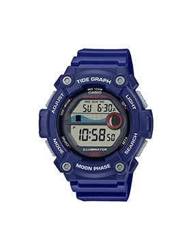 Jam tangan Casio pria dengan format Digital. Perhatian para pencinta air! Teman yang cocok untuk siapa saja yang menyukai olahraga air. Jam tangan ini memiliki desain eksterior tahan lama, ketahanan air 100 meter, dan masa pakai baterai 10 tahun. Kemudian tambahkan grafik gelombang, data bulan, dan lampu LED untuk memastikan Anda dapat dengan mudah membaca jam meskipun dalam keadaan gelap, guna memberikan semua hal yang diperlukan pencinta olahraga air, lewat ujung jari Anda. Dengan stopwatch, pengatur waktu, dan alarm, jam tangan serbaguna ini dengan mudah menemani Anda di kantor atau rumah, maupun di kolam renang atau laut.